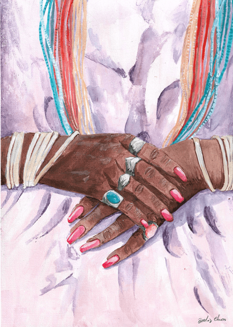 Bia destaca que as suas principais referências são pessoas negras. “Quando pinto estou fazendo uma investigação sobre as nuances da coloração da pele, os formatos dos lábios. Faço isso não apenas para valorizar a aparência negra, mas também para entender quem eu sou, quais as minhas preferências. E, claro, por achar incrivelmente belo a nossa cor e a nossa fé”.