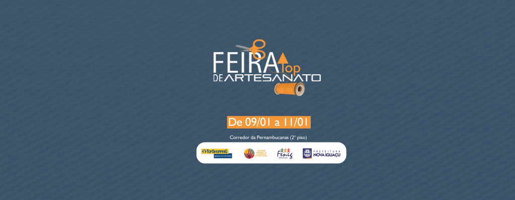 Artesãs e artesãos de Nova Iguaçu estão preparando produtos de qualidade e beleza para a Feira Top de Artesanato nos dias 9 a 11 de Janeiro, no TopShopping. Locais: Corredor Magalu (1º Piso) e Corredor Pernambucanas (2º Piso).